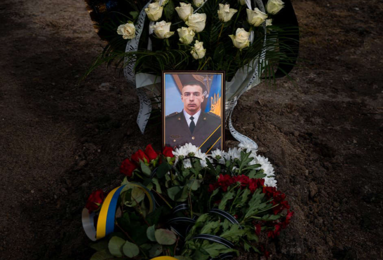 Pa një grusht të hedhur mbi varrin e tij nga familjarët, varrimi ‘i vetmuar’ i ushtarit ukrainas
