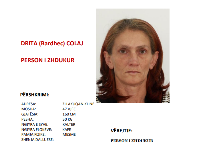 1765130790 - Zhduket një grua në Klinë, Polica kërkon ndihmën e qytetarëve për gjetjen e saj
