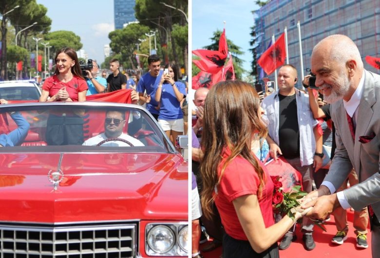 Me makinë kabriolet, Luiza Gega pritet me ceremoni të veçantë në Tiranë