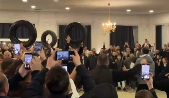 Simpatizantët e Faton Pecit festojnë me goma në Mitrovicë