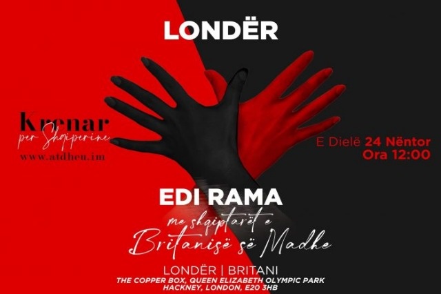 Me flamujt kuq e zi në duar/ Mijëra shqiptarë presin Ramën në takimin me diasporën në Lond...