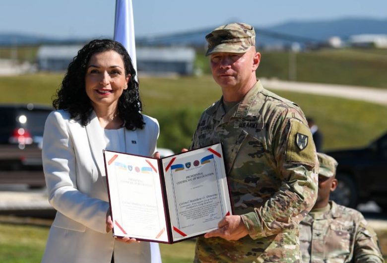 Presidentja Osmani në Bondsteel: Ushtria amerikane, garanci e sigurisë në Kosovë