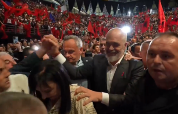 Kryeministri Rama mbërrin në stadiumin grek, pritet me brohorima dhe duartrokitje nga emig...