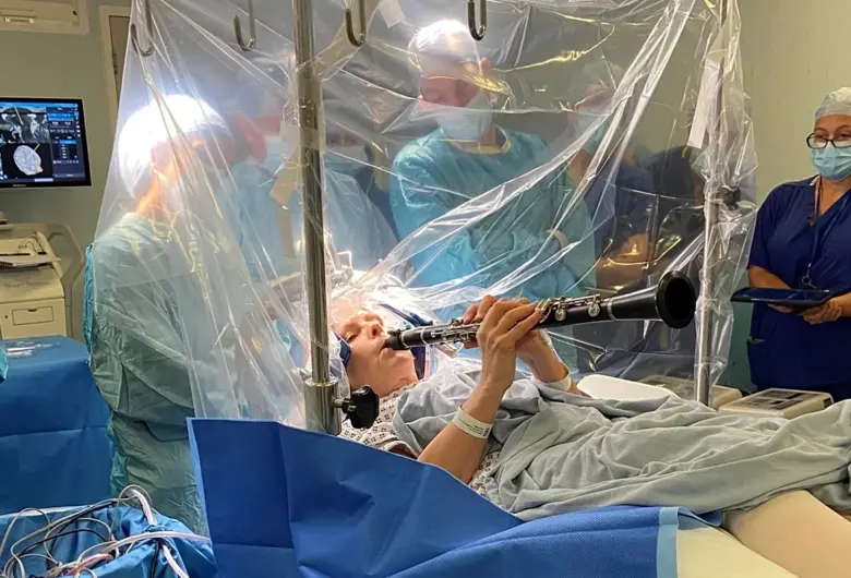 Gruaja nga Britania luan klarinetë gjatë një operacioni në tru për të lehtësuar simptomat e sëmundjes së Parkinsonit