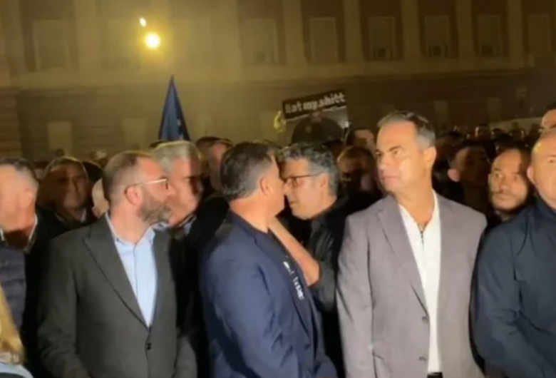 1765045498 - Opozita protestë për dorëheqjen e Veliajt, hidhet molotov para Bashkisë