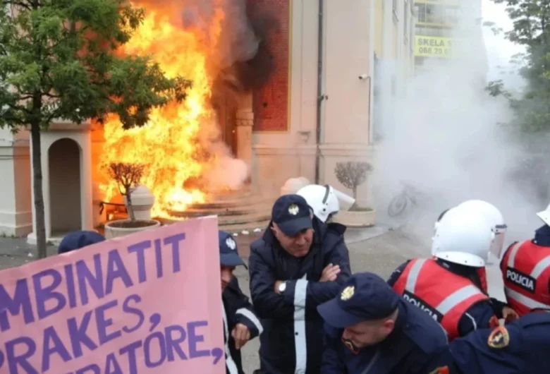 Hodhën lëndë piroteknike dhe molotov gjatë protestës para Bashkisë së Tiranës, arrestohen ...