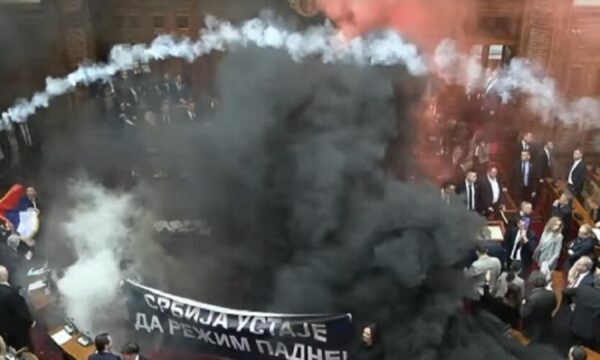 Momenti kur një deputete e parlamentit serb goditet me shishe në kokë, dyshohet se sulmi e...