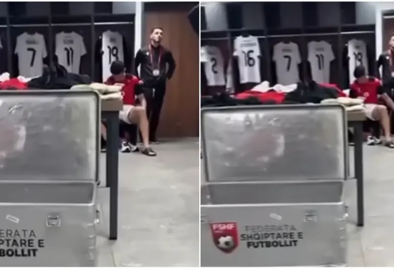 1764947777 - Pamje nga zhveshtorja e Shqipërisë, lojtarët bëhen gati nën ritmin e këngëve të Ilir Shaqi...