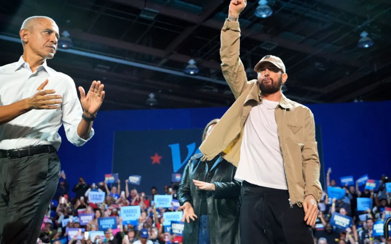Obama befason turmën në mitingun e Harris, bën rap me këngën ikonë të Eminem