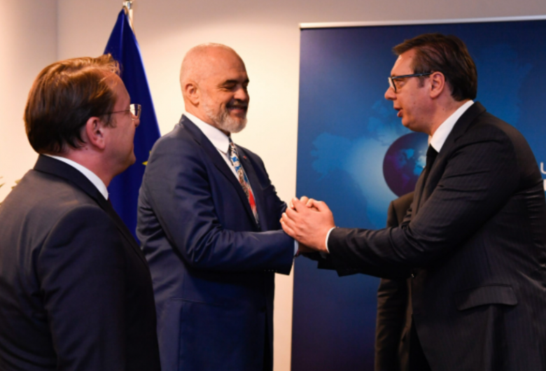 Duarshtrëngim i ngrohtë mes Edi Ramës dhe Aleksandar Vuçiqit në Bruksel