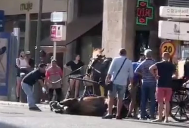 1764921179 - Momenti i tmerrshëm rrëzohet kali teksa tërhiqte karrocën turistike në Majorca në vapë 40 ...