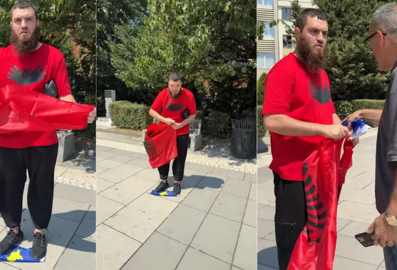 Qytetari vjen nga Tirana dhe e shkel flamurin e Kosovës në qendër të Prishtinës, kapet me një kalimtar të rastit