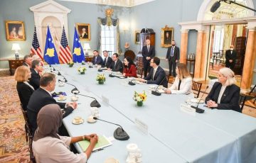 1764985605 - Një grua me shami në tavolinën e Blinken kur u takua me Osmanin e Kurtin