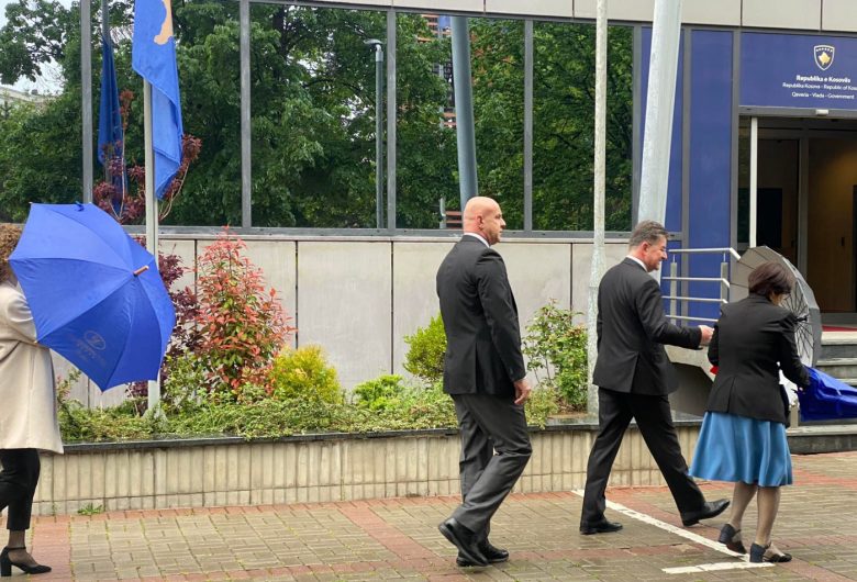 Lajçak mbërrin në objektin e Qeverisë së Kosovës