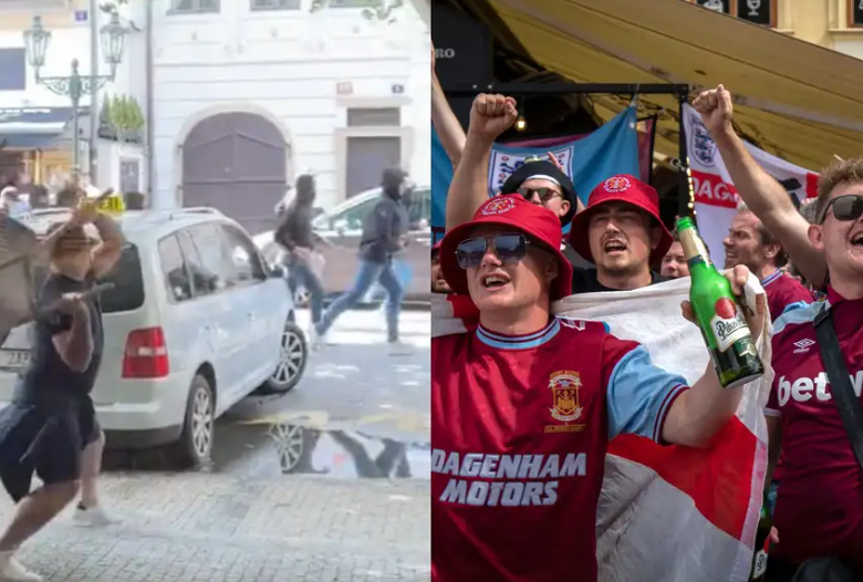 1764980395 - Tifozët e West Ham dhe Fiorentinas përleshen në Pragë