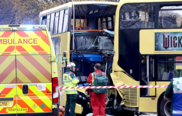 1764931399 - Përplasen dy autobusë në Manchester, 17 persona përfundojnë në spital