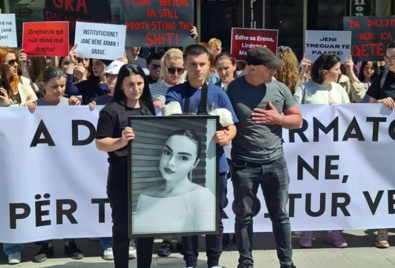 Marsh protestues në Ferizaj pas vrasjes së 21-vjeçares, merr pjesë edhe vëllai i saj i pla...