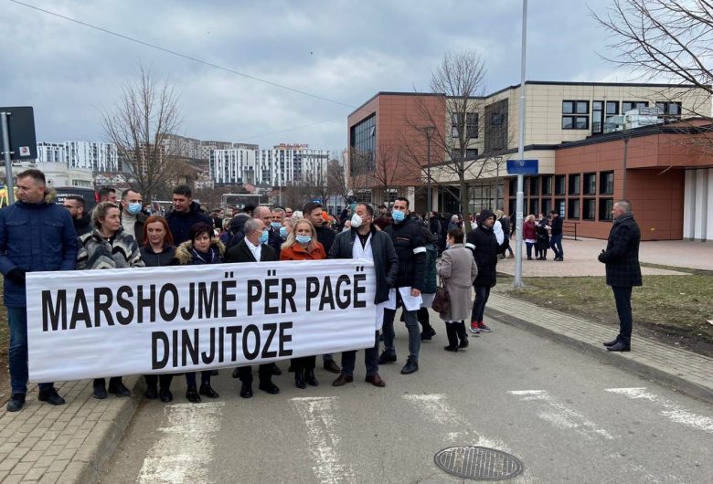 Infermierët kërkojnë pagë dinjitoze, marshojnë nëpër rrugët e Prishtinës