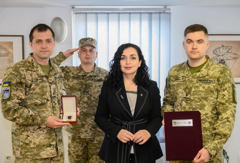 Presidentja dekoron me Medaljen Presidenciale Ushtarake kontigjentin ukrainas të KFOR-it