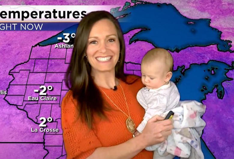 Mamaja meteorologe bëhet virale, prezanton motin me foshnjën e saj në krahë