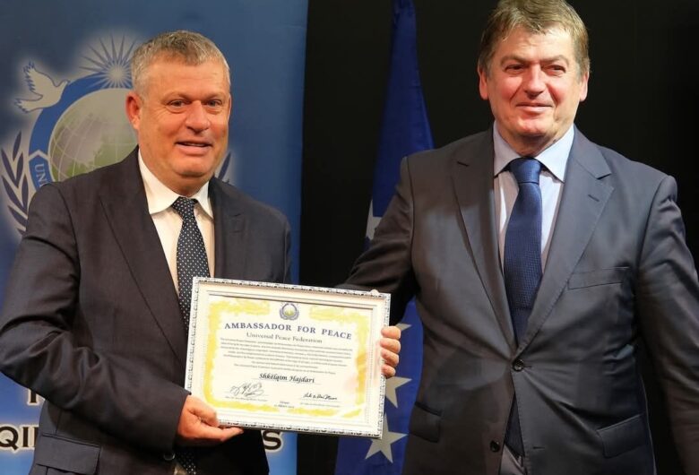 Shkëlqim Hajdari nderohet me titullin e lartë “Ambasador i Paqes” në 17-vjetorin e Pavarës...