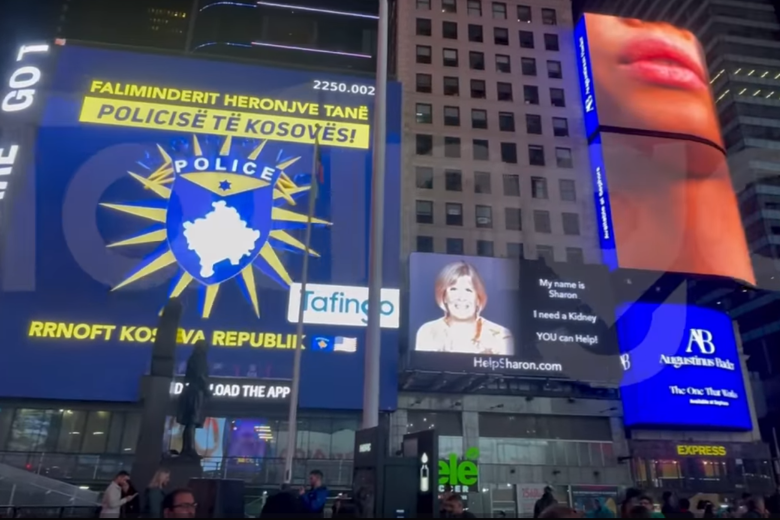 Në nderim të policit Afrim Bunjaku, logo e Policisë së Kosovës shfaqet në sheshin “Times Square” në New York