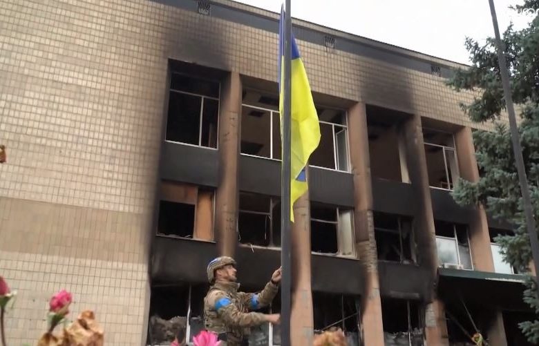 Ngitet flamuri ukrainas në Izium