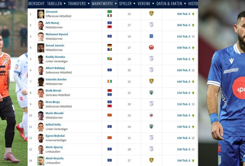 Të dhënat e fundit në Transfermarkt, Giovanni e Arb Manaj lojtarët më të vlefshëm në Super...