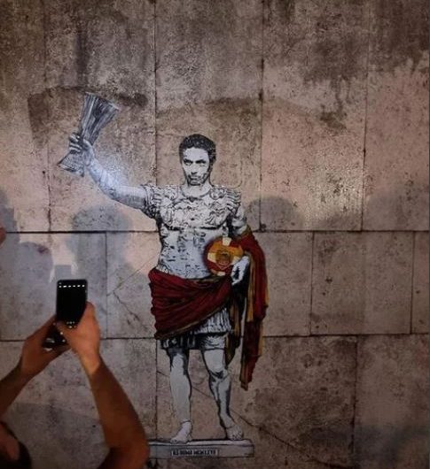 1765139358 - I dhuroi Romës trofeun e parë europian, tifozët romanistë e bëjnë vepër arti Mourinhon
