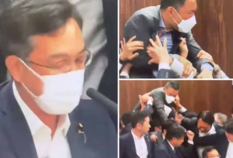 1767076104 - Kaos në parlamentin japonez, përleshen deputetët e pozitës dhe opozitës