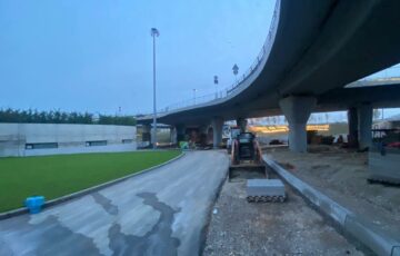 Rama ndan pamje nga punimet në mbikalimin që lidh Qendrën me Arbërinë