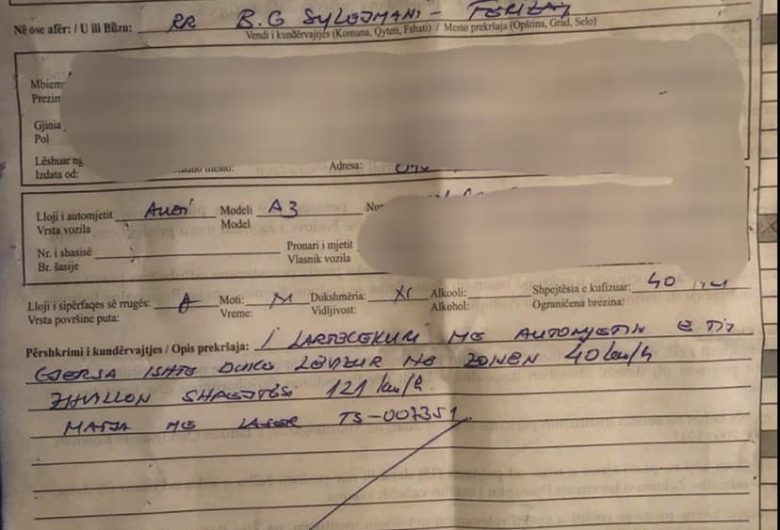 500 euro, pesë pikë negative, një vit pa patentë shoferë, pasi voziti 121 km/h