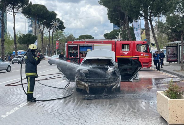 Tymi mbulon bulevardin Dëshmorët e Kombit në Tiranë, shpërthen në flakë një automjet