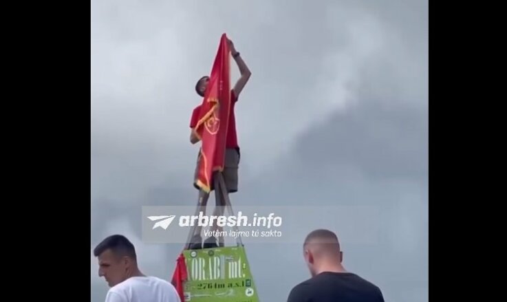 1764966039 - Shkelzen Ismajli nga Prekazi ngjit majën e Korabit dhe vendos flamurin e UÇK-së