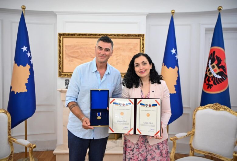 Osmani ia dorëzoi Dukagjin Lipës medaljen Presidenciale të Meritave rock grupit Oda