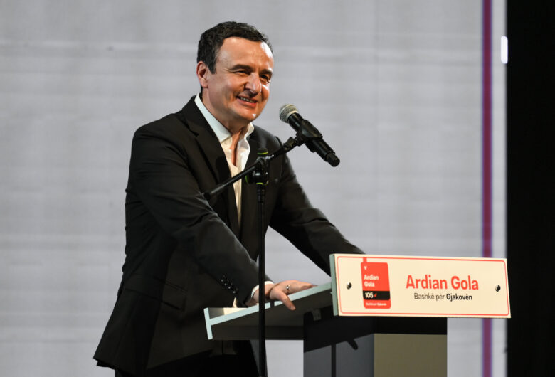 Kurti premton prodhimin e dronëve “Made in Kosova” në Gjakovë në mbështetje të Ardian Golë...
