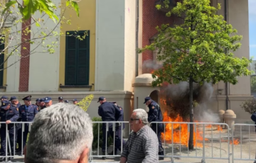 Protesta e opozitës në Tiranë, rrezikohet jeta e policit – molotovi i shpërthen te këmbët