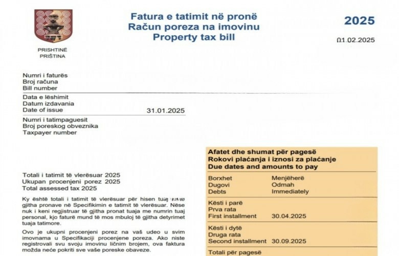 Publikohen faturat e tatimit në pronë për vitin 2025