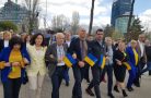 Tubim për Ukrainën në Tiranë, dhjetëra qytetarë në shesh. Yuri Kim i bashkohet marshimit