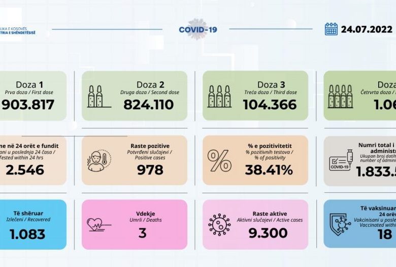 Tre të vdekur dhe 978 raste të reja me COVID-19
