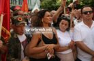 Vasfije Krasniqi dhe Xhuliana Nura në protestën kundër Gjykatës Speciale