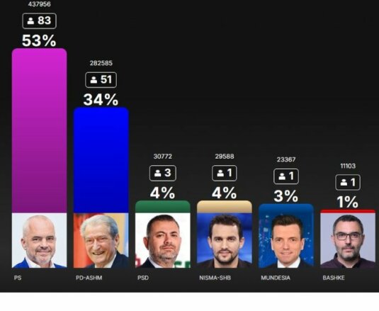 1764933053 - Drejt kutive të fundit/ PS shkon në 83 mandate, PD humb 2 mandate në pak minuta