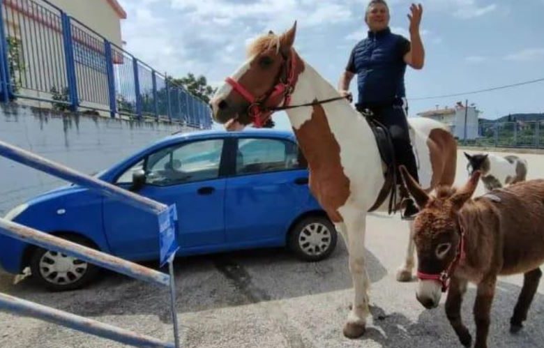 Zgjedhjet në Greqi, fermeri shkon për të votuar me kalë e gomar