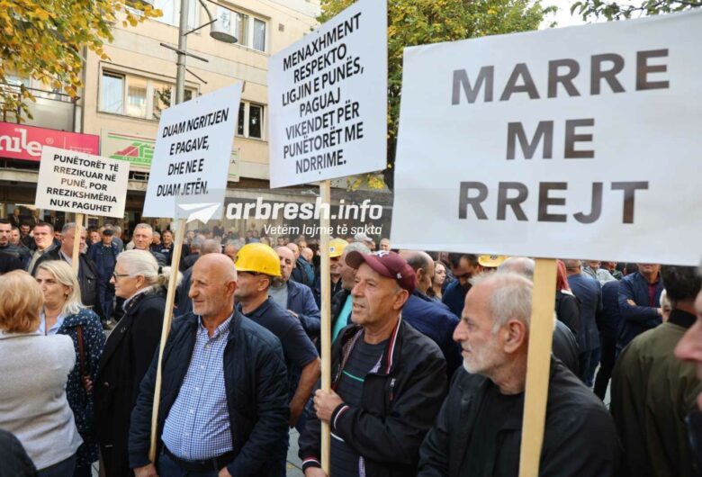 1764951582 - Dhjetëra punëtorë protestojnë para zyrës së KEK-ut, kërkojnë rritje page dhe kushte të tje...