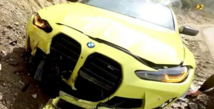 Një BMW M4 Competition doli nga rruga dhe u përplas me një mur shkëmbor përgjatë rrugës malore Angeles Crest Highway në Kaliforni.