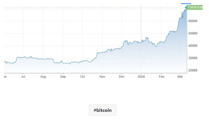 Çmimet e Bitcoin shënuan një rekord të ri të hënën, duke kaluar vlerën e 71,000 dollarëve.