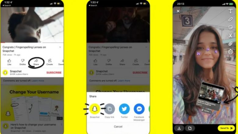 Mënyra e përdorimit është bërë shumë e lehtë, duke hyrë në app të Youtube dhe duke shtypur butonin “sharë”, dhe pastaj do të ju shfaqet ikona e snapchat-it, shkruajnë mediat e huaja, përcjell arbresh.info.